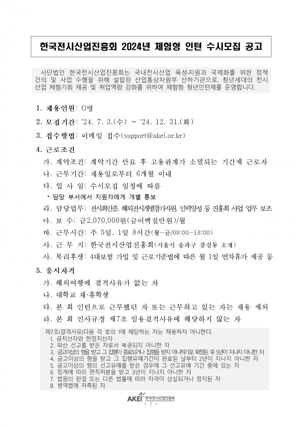 [수시채용] 2024년 한국전시산업진흥회 인턴 모집